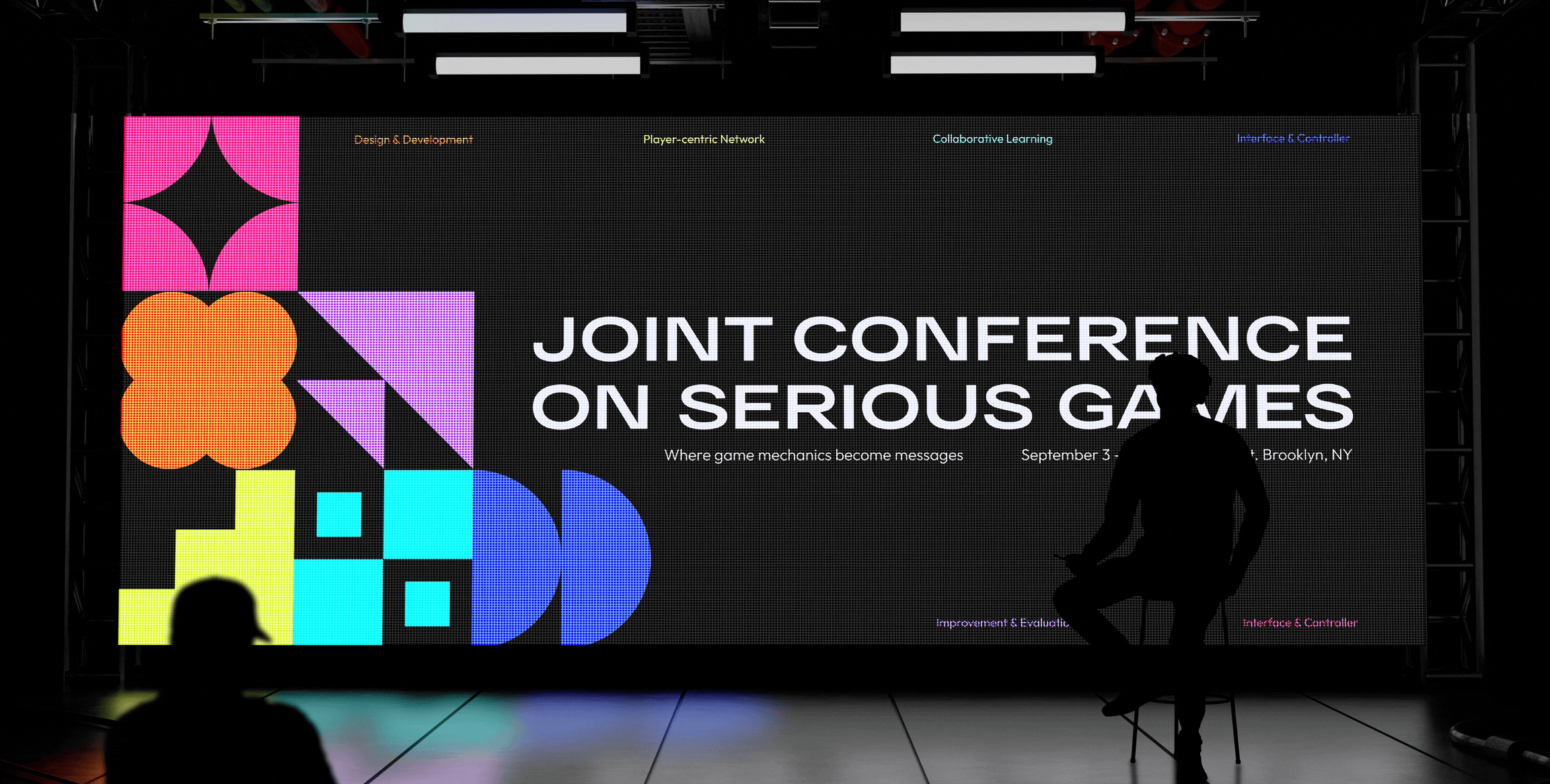 Brand identity for the 2024 Joint Conference on Serious Games, spanning print, motion, wayfinding, social, web, and etc.