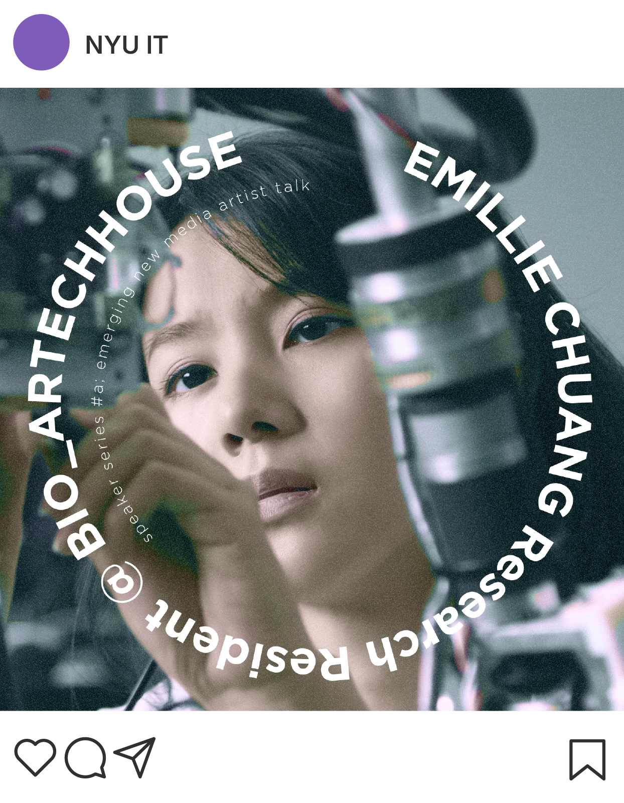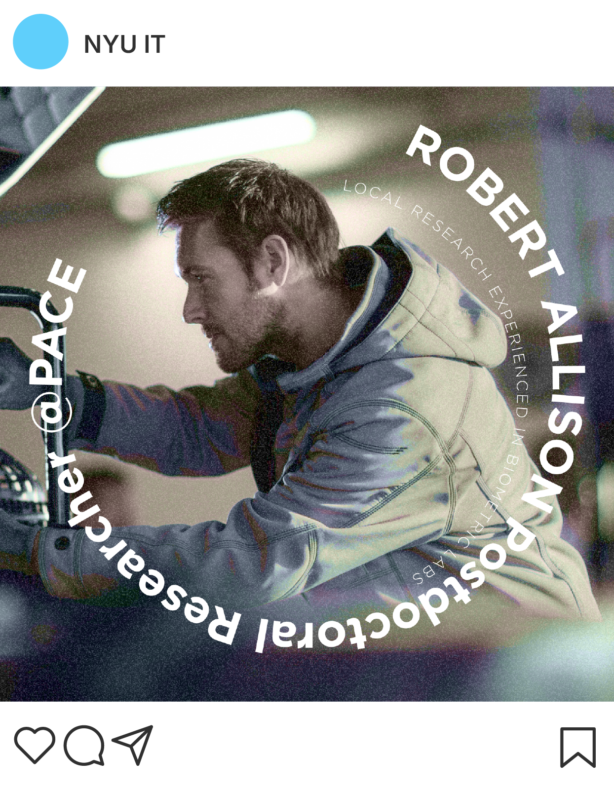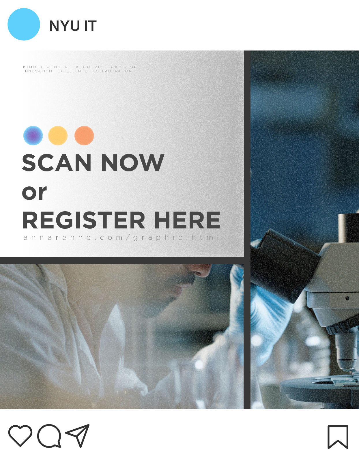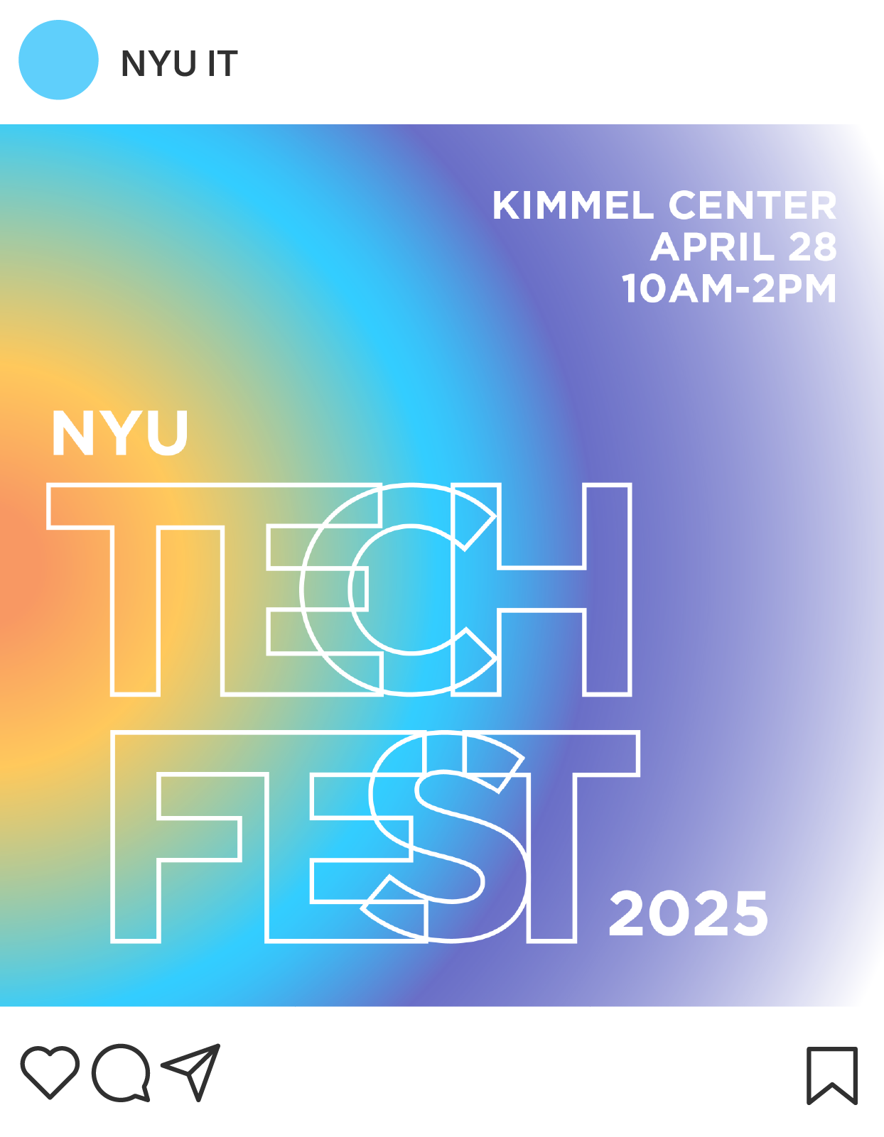 The central gradient circular visual symbolizes the energy of innovation, reflecting the forward-moving nature of technology and its ability to connect and propel us. The design celebrates the future of technology, grounded in NYU’s academic culture.