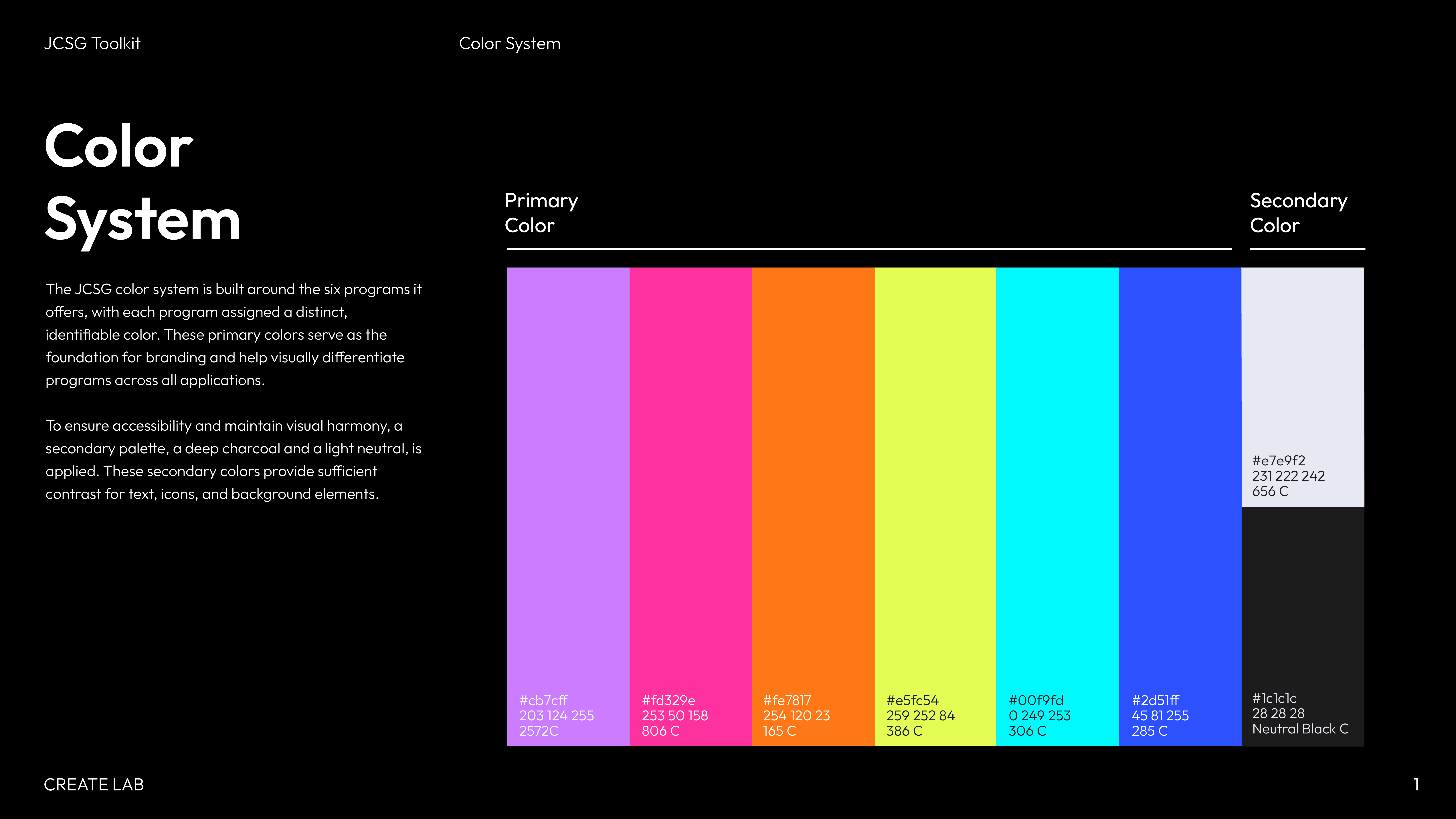 The JCSG 2024 identity is built around a modular system of six abstract icons, each representing a core