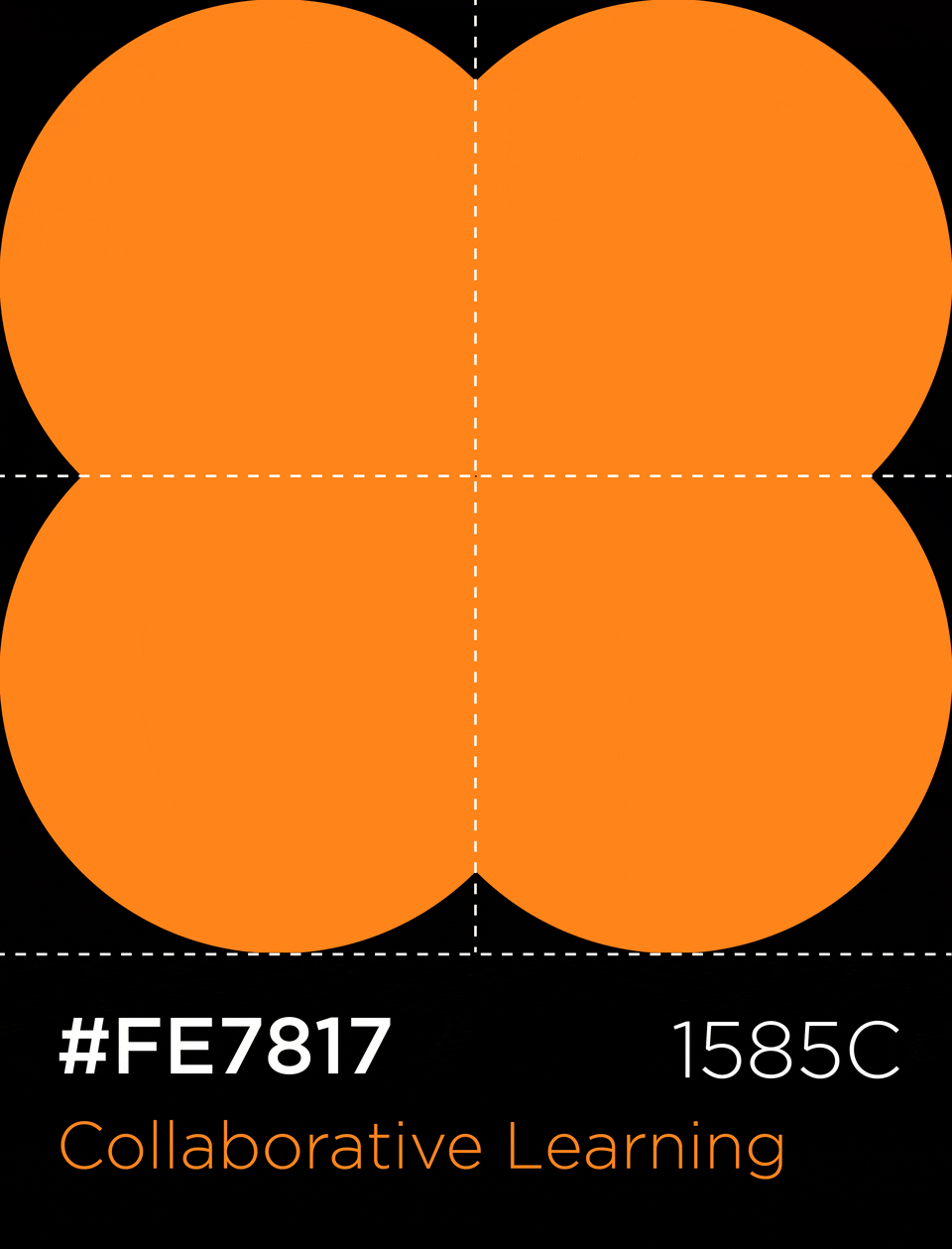 multidisciplinary platform at the intersection of design, technology, and learning. The modular icon grid reinforce visual consistency while drawing attention through bold color and
