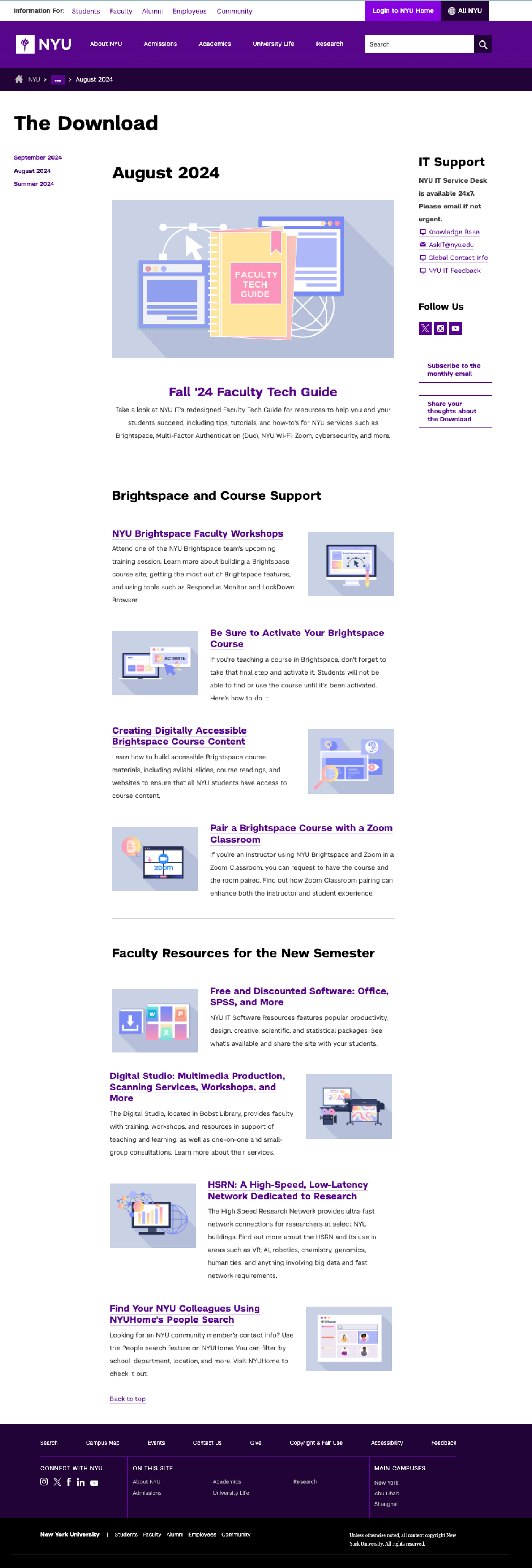 Monthly 'The Download' Newsletter graphics for NYU IT Communications.