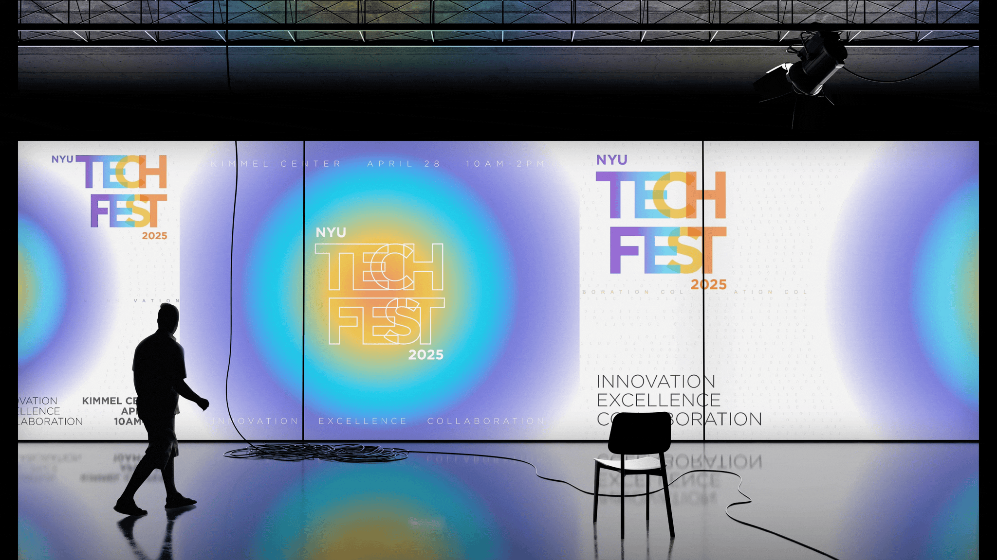 A brand system for NYU’s Tech Fest 2025, designed to reflect the festival’s energy through motion, color gradients, and interactive visuals.