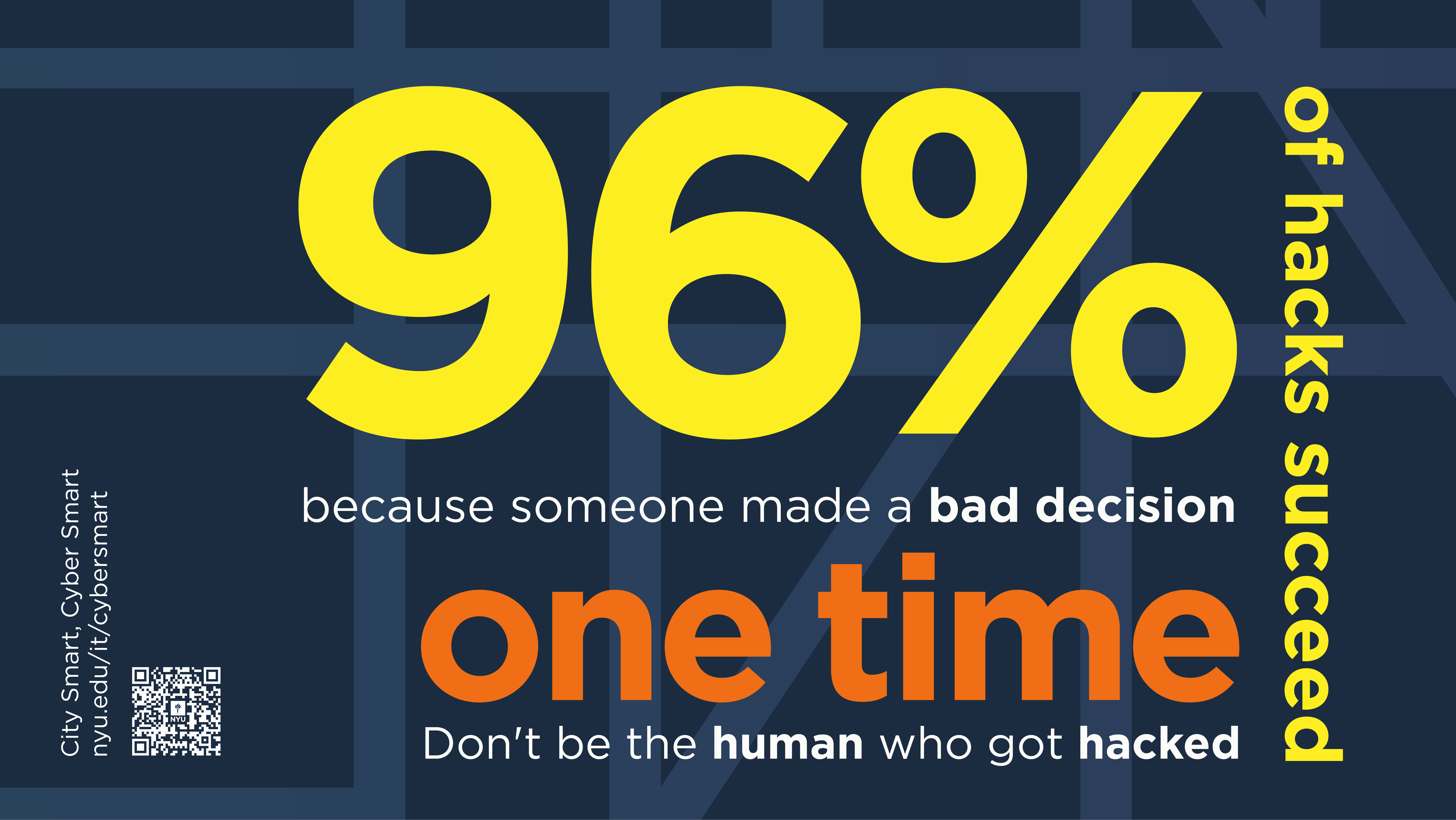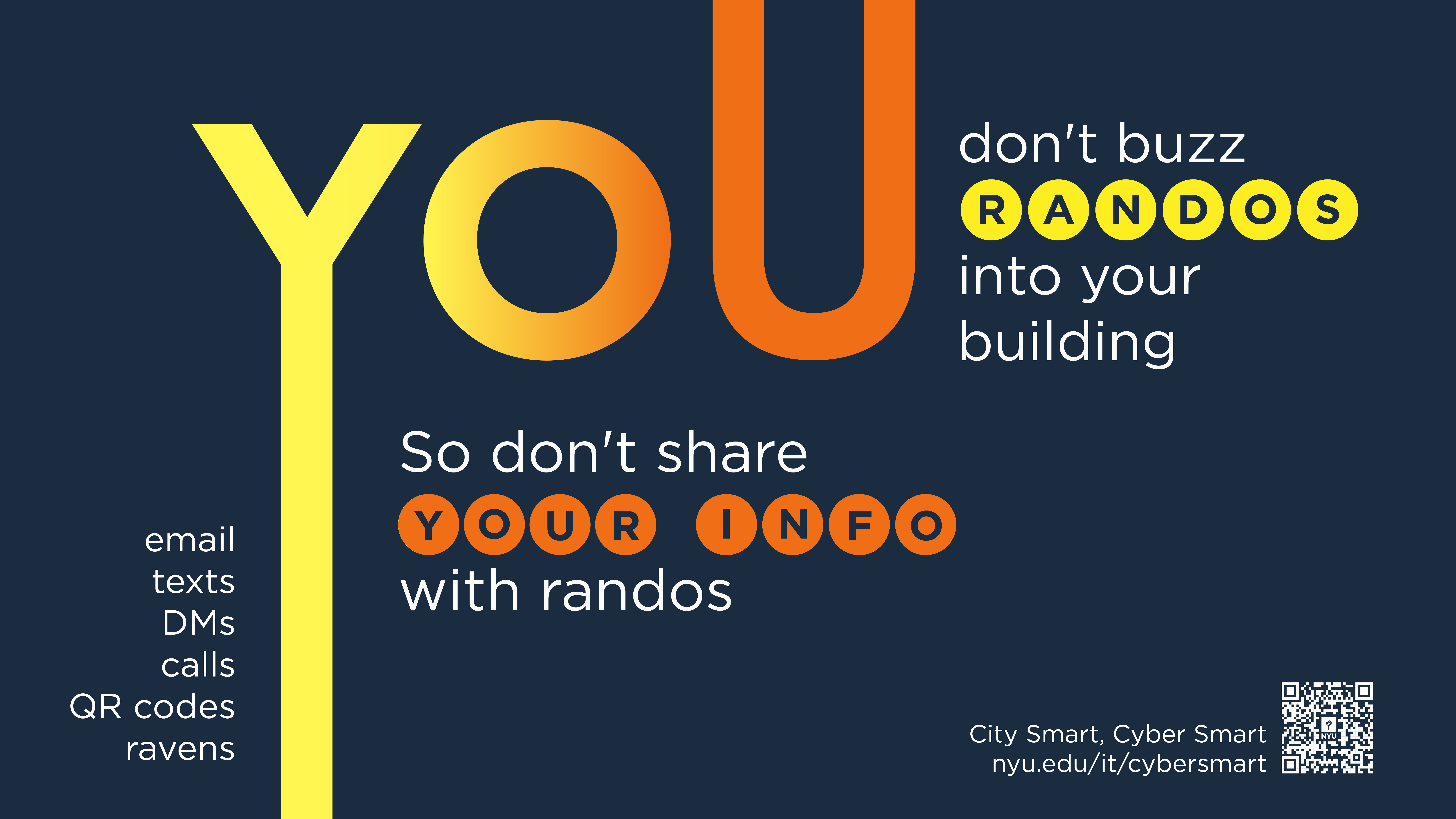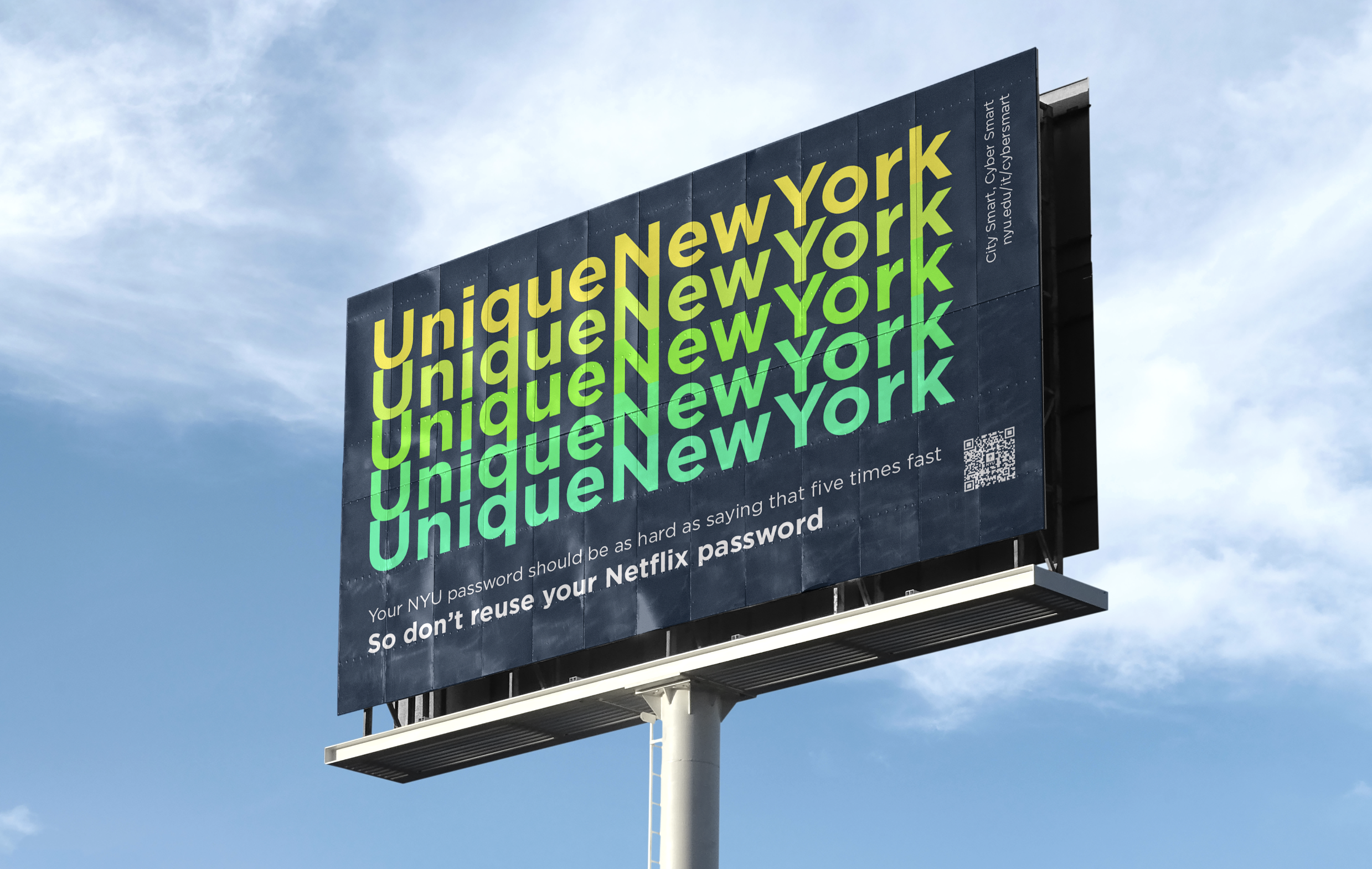 For NYU IT’s 2023 "City Smart, Cyber Smart" campaign, I designed over 40 signage pieces that paralleled NYC’s MTA system with cybersecurity. Using track lines, route numbers, and bold colors, the visuals made digital safety feel familiar and navigable. Just like the subway, which may seem chaotic at first but is ultimately learnable, cybersecurity can be approached with the same confidence. The campaign was featured in Educause’s 2024 Horizon Report for its impactful, community-focused approach.