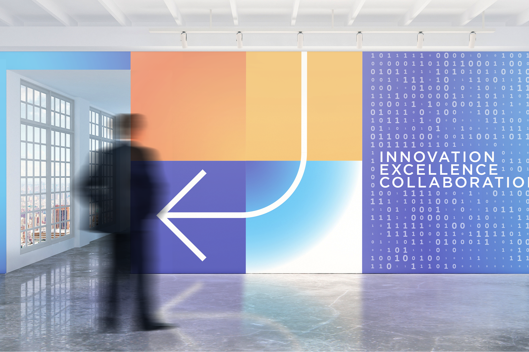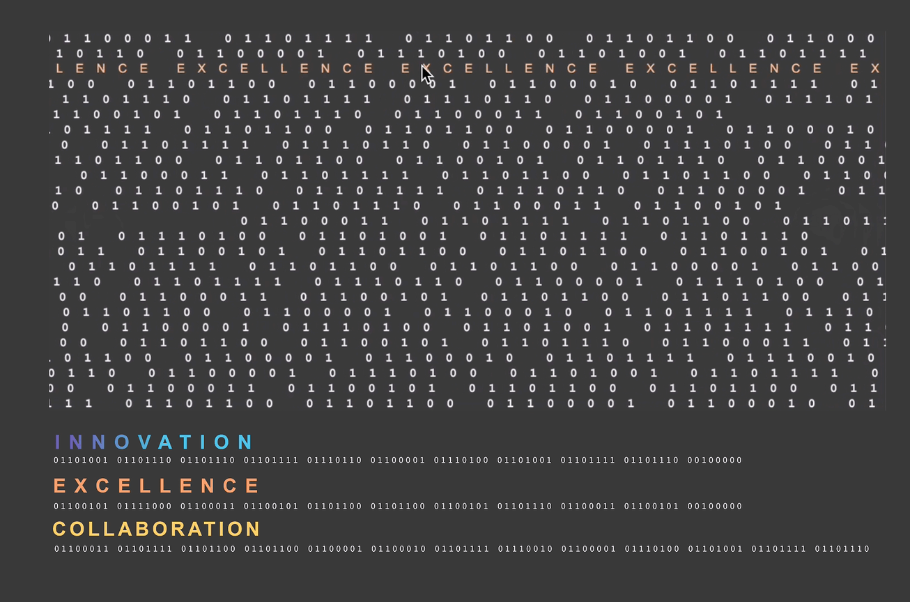 The typeface enhances clarity and professionalism, while the embedded binary code—decoding to "innovation, excellence, collaboration"—subtly reinforces the festival's themes.